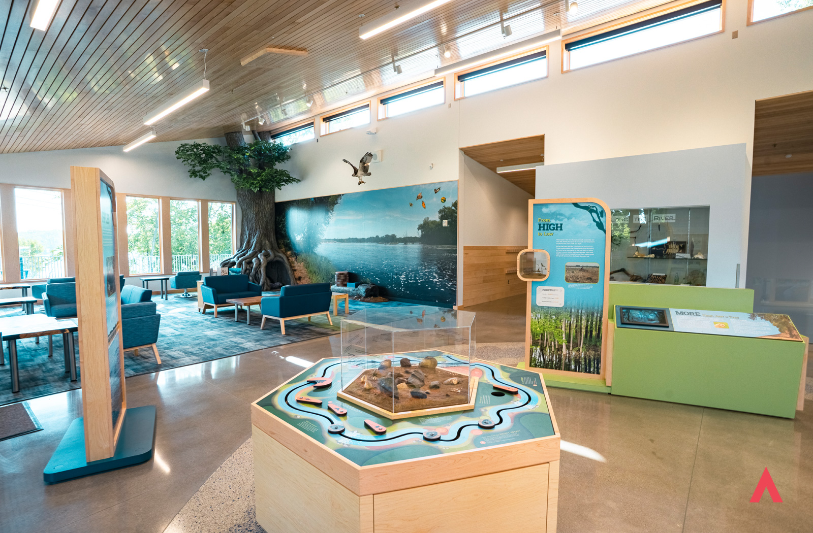 This building provides a wonderful jumping off point for Minnesotans to learn about the Mississippi River ecosystem and now sustainable operations in the building as well. The location supports river kayaking, nature walks, and a beautiful indoor display of typical ecosystem inhabitants and more. If you’re in the area stop by to learn something new about the largest river in the US!