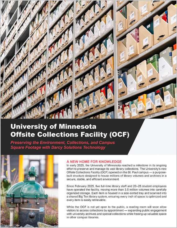 Darcy Solutions installed a 3-well, 100-ton groundwater geothermal system to maintain precise environmental conditions for the University of Minnesota’s high-density storage facility. The system provides stable, high-efficiency climate control necessary for preserving academic archives. The building is akin to an industrial library with moving columnal shelving to house remnants of the past, maintaining temperature and humidity levels is a core necessity of operation.