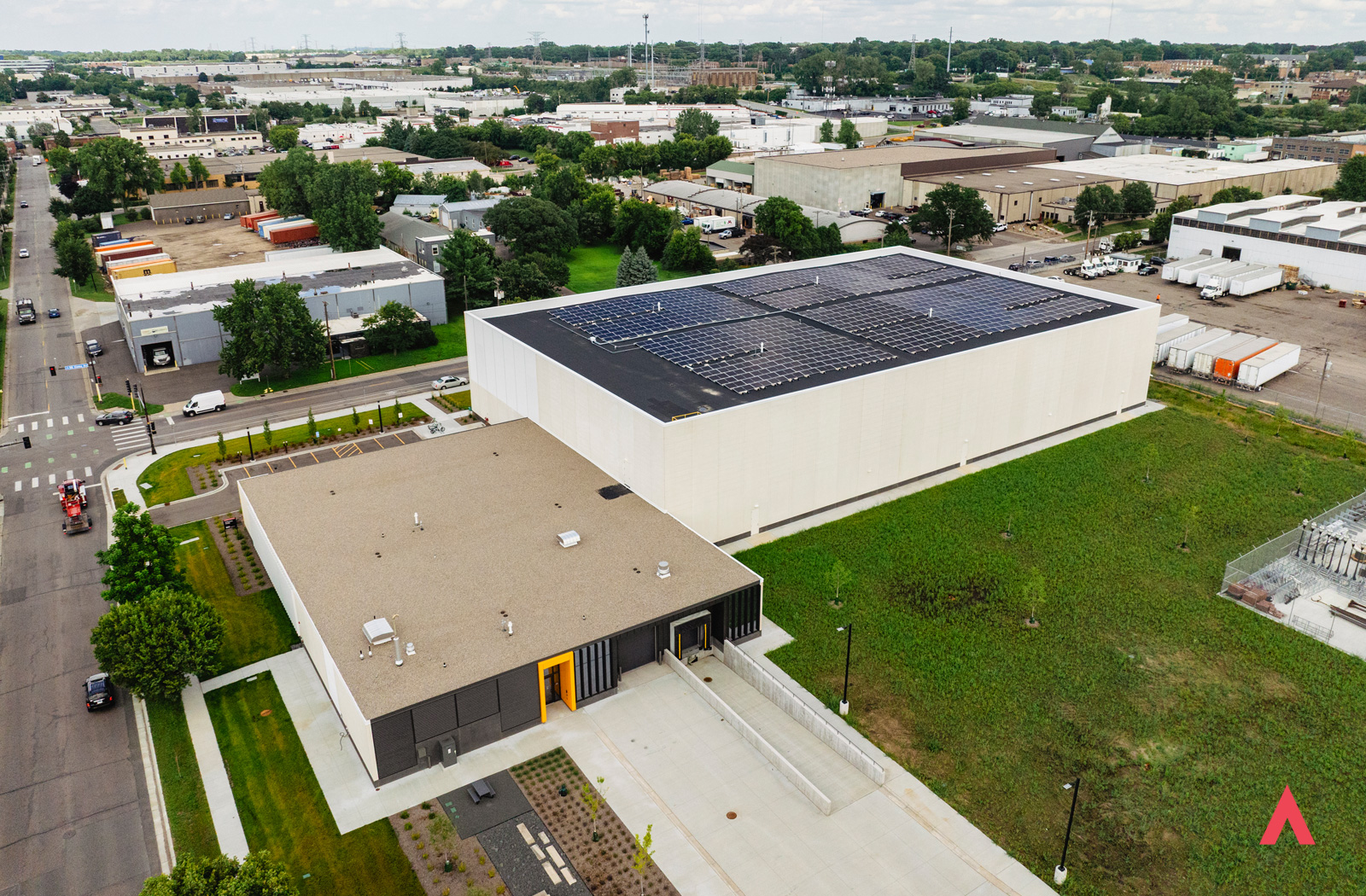 Darcy Solutions provided the perfect balance of efficiency and site-specific flexibility for an urban environment. Because the system requires significantly less space than traditional geothermal, it was a natural fit for the UMN Offsite Collections Facility (OCF) parcel, offering stakeholders a reliable and sustainable thermal resource combined with a beautiful modern architectural design that showcases utility with aesthetics. The building includes a solar array on the larger roof layer, visible from above with the drone photography, see more in the case study included here.